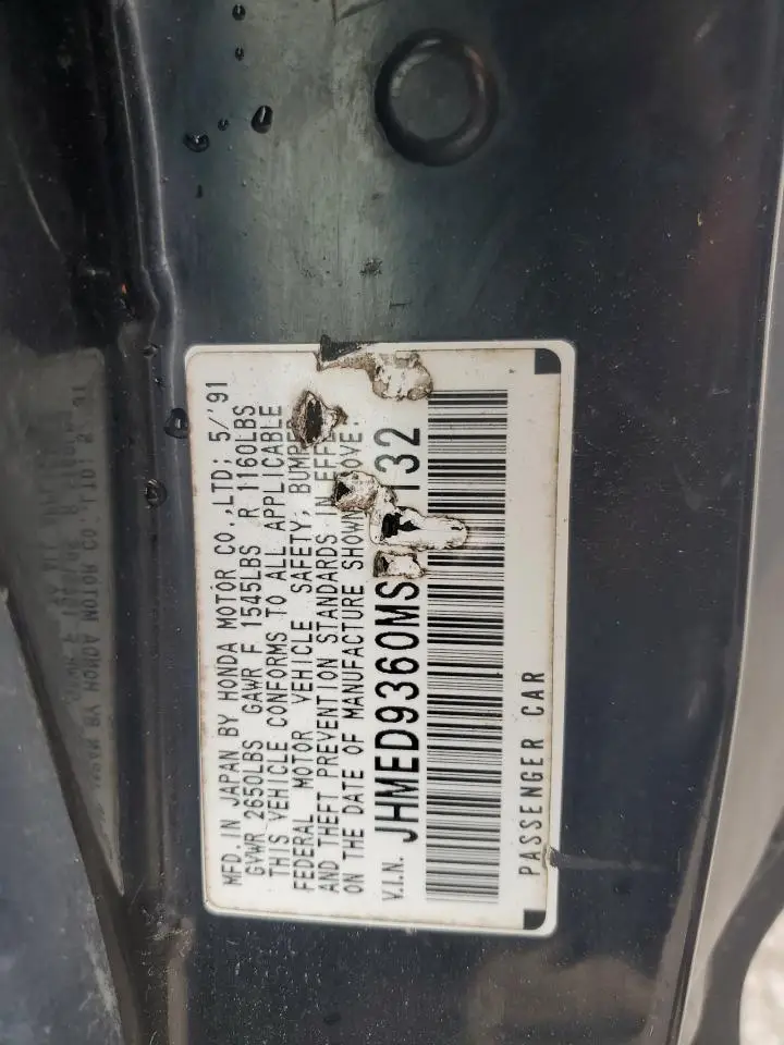 JHMED9360MS010132 HONDA CIVIC 1991 - Vehicle history report