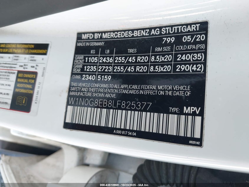 - VIN - W1N0G8EB8LF825377