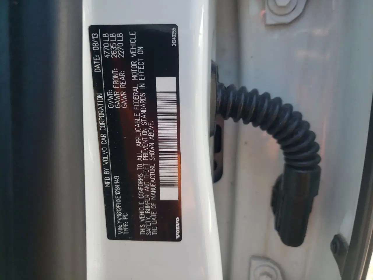 - VIN - YV1612FHXE1284149