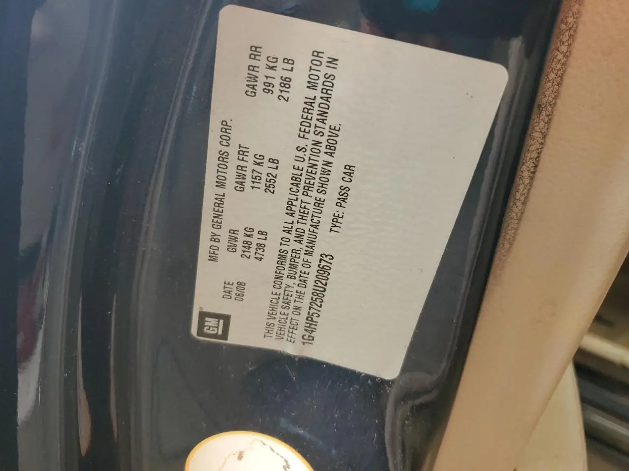 Где находится VIN-номер BUICK LUCERNE 2008?