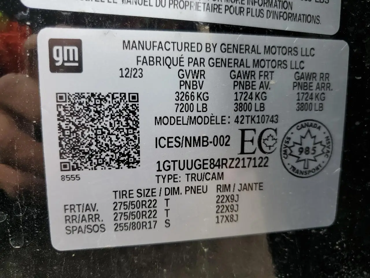 Вся інформація про авто GMC SIERRA 1GTUUGE84RZ217122