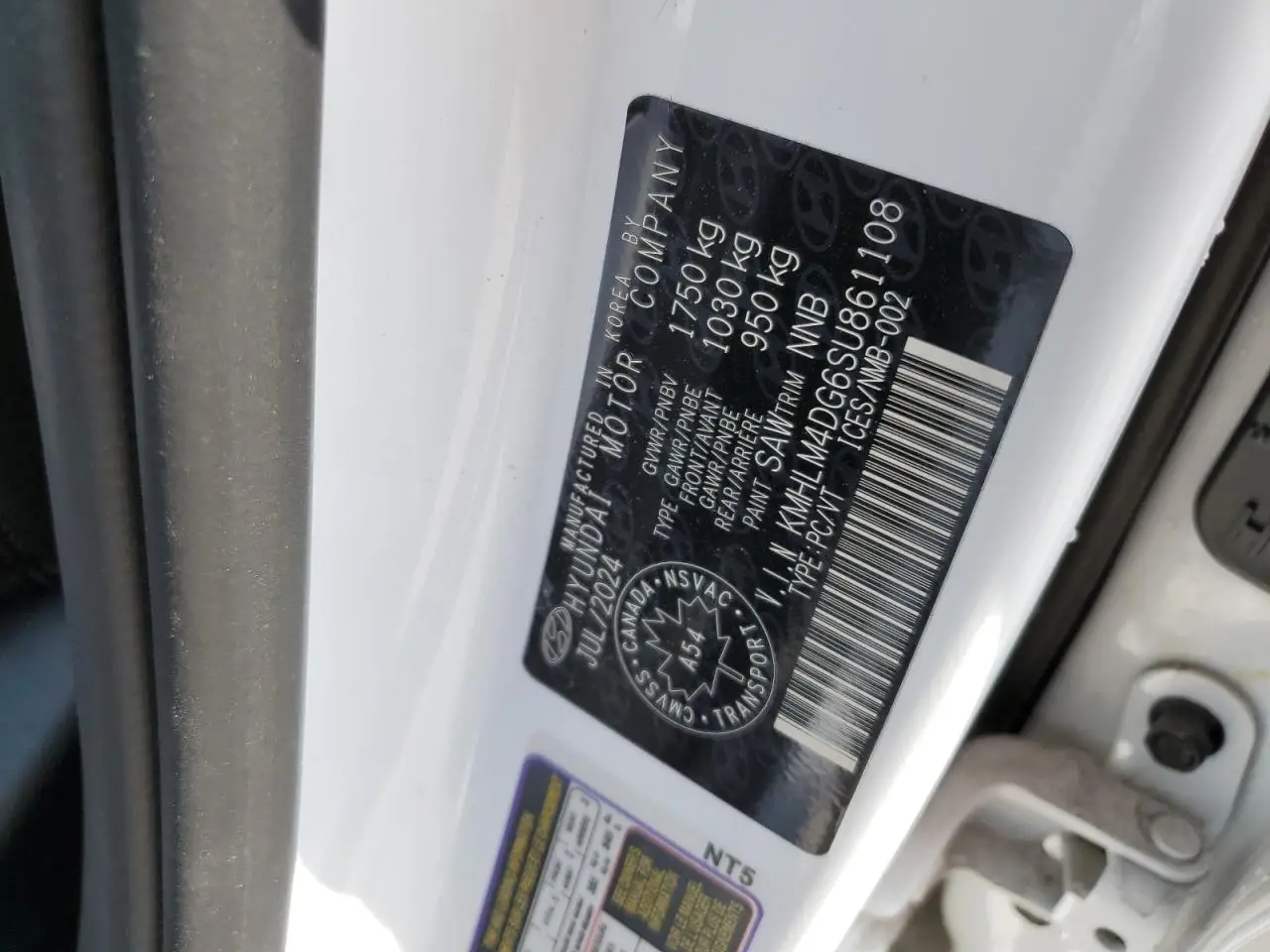 - VIN - KMHLM4DG6SU861108